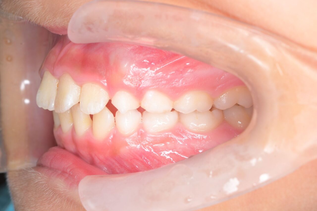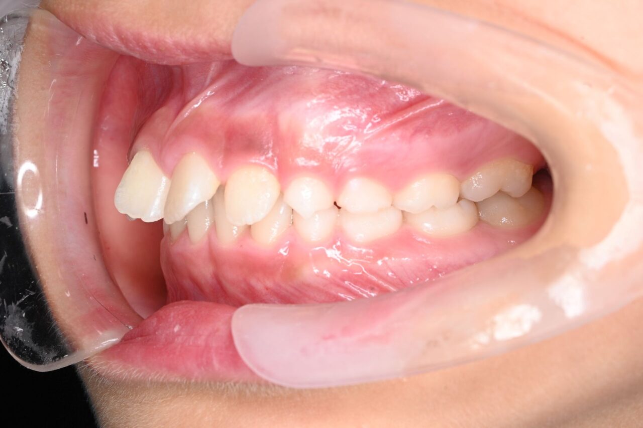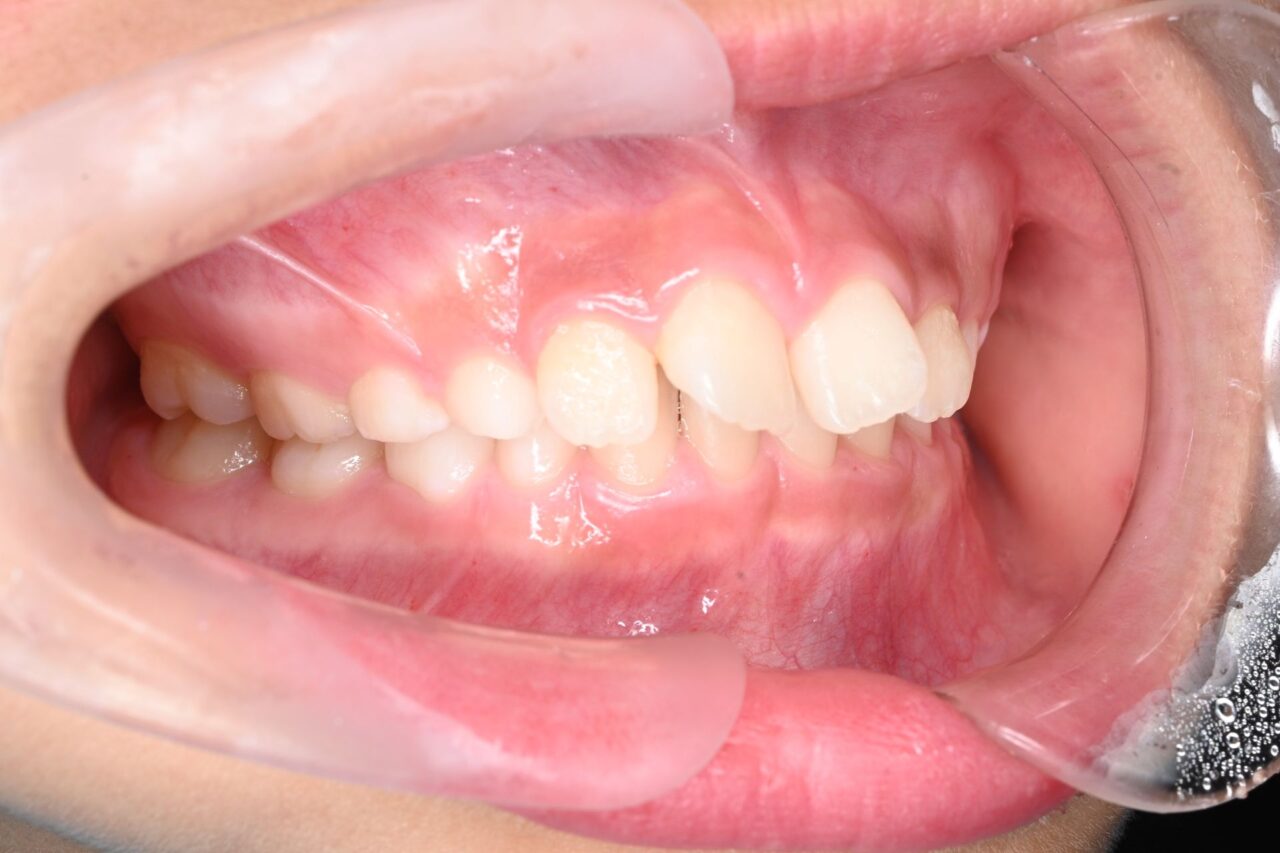 見た目はだいぶ改善されましたが、奥歯のかみ合わせがⅡ級のままです。