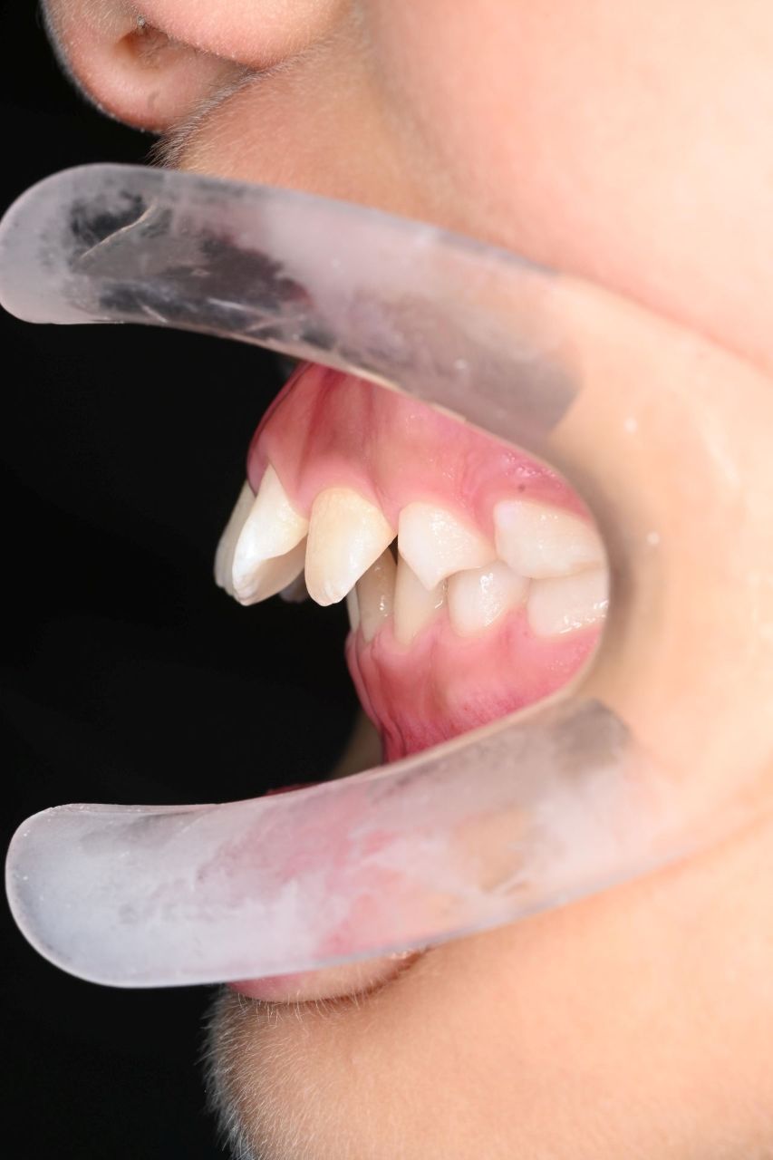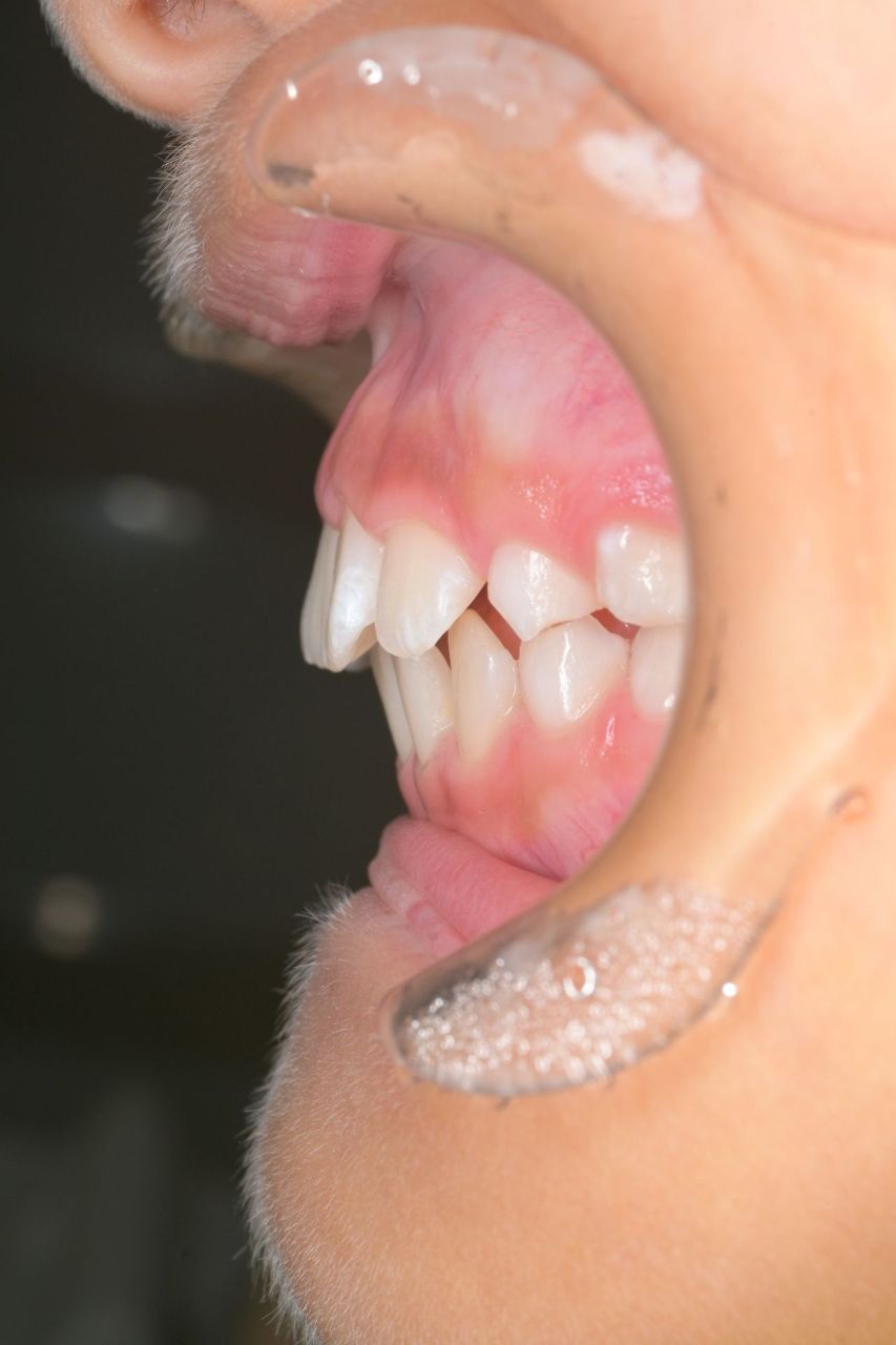 咬み合わせが深くて(過蓋咬合)、下の歯が上の歯茎に刺さっています( ;∀;)